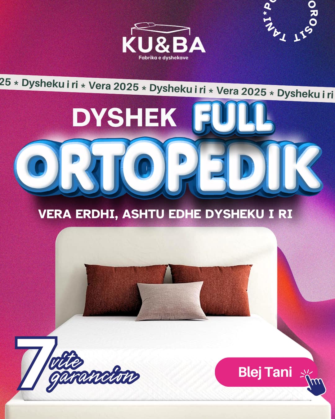 Firma KU&BA është themeluar qysh në vitin 1972, ku kemi filluar kryesisht me prodhimin e jogive dhe federave për kauqa. Punojmë jogi, dyshek, sipas porosisë prej më të ndryshmeve në madhësi të ndryshme. Punojmë materiale për mobilieri, shtofa, gërshërë, syngjer classic, syngjer classic orthopedic, syngjer visco latex etj.